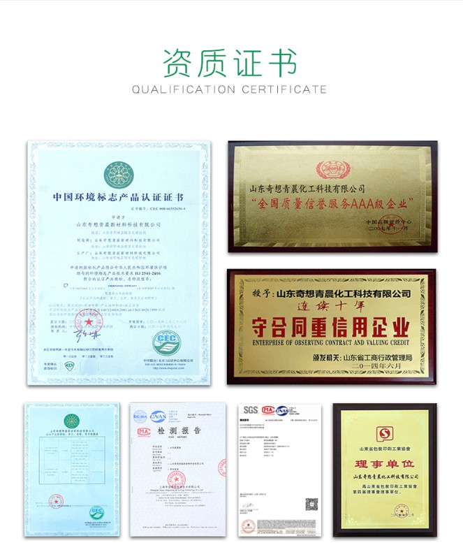 ? ? ? ? 山東奇想青晨新材料科技有限公司,坐落于山東好漢的故鄉--菏澤鄆城。公司成立于2002年,致力于水性膠粘劑的研發、制造與銷售,主要服務于印刷、包裝行業,產品主要包括水性干法復膜膠、水性濕法復膜膠、水性裱糊膠、水性封口膠、油性封口膠、水性軟包裝復合膠、水性凹印復膜膠等七大類產品。